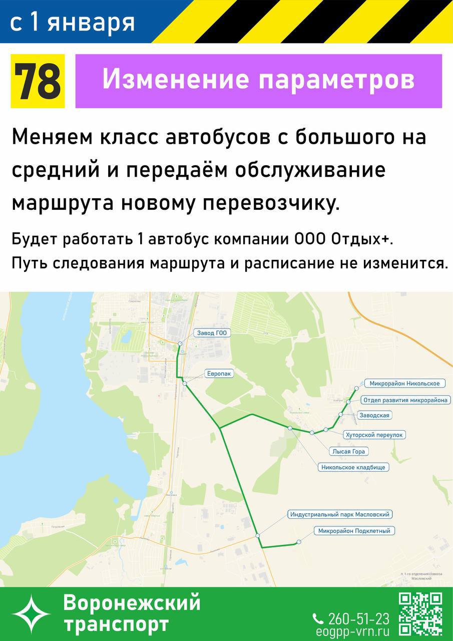 Класс автобусов на маршруте №78 изменится с большого на средний. На линии будет работать один автобус. При этом путь следования и расписание не изменятся.