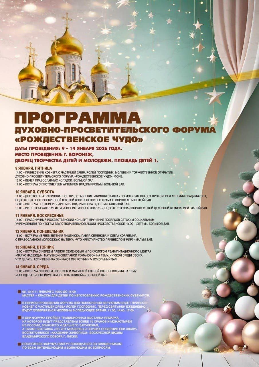 С 9 по 14 января во Дворце творчества детей и молодежи (пл. Детей, 1) пройдет духовно-просветительский форум «Рождественское чудо»