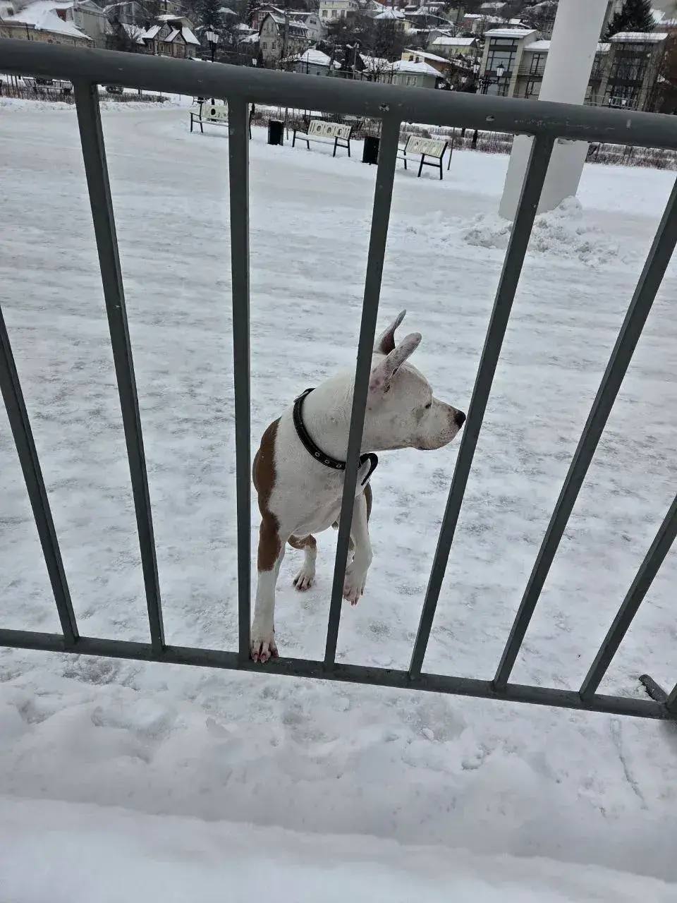 Животное с ошейником, в посетителях катка собака пытается найти владельца. Всех, кто что-то знает о хозяине собаки или может помочь в его поиске, просят обращаться к сотрудникам катка или охране территории.