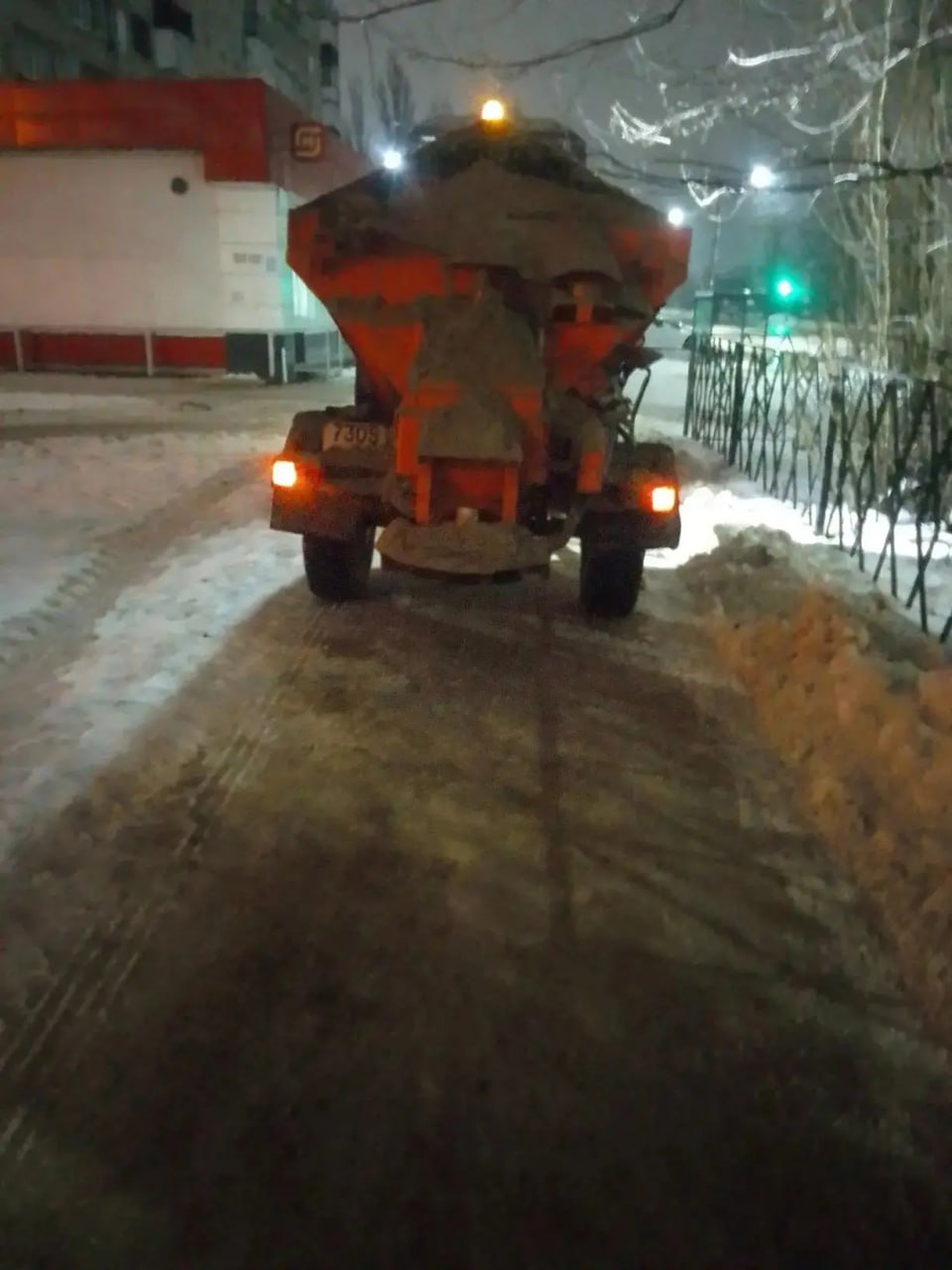 С ночи и в течение всего дня техника Комбината благоустройства Левобережного района занимается противогололедной обработкой пешеходных зон. Процесс идет непрерывно.