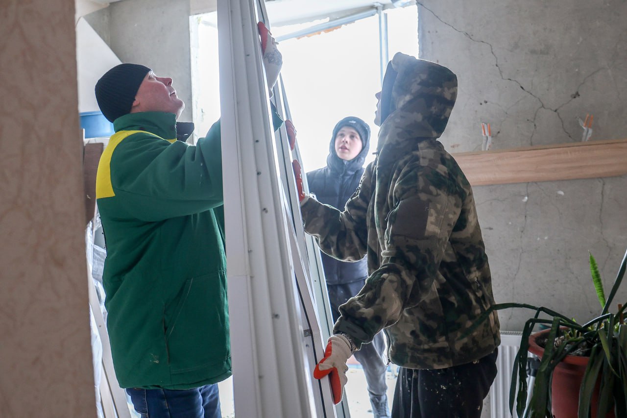 Повреждённые от налёта БПЛА окна в квартирах начали восстанавливать в Воронеже
