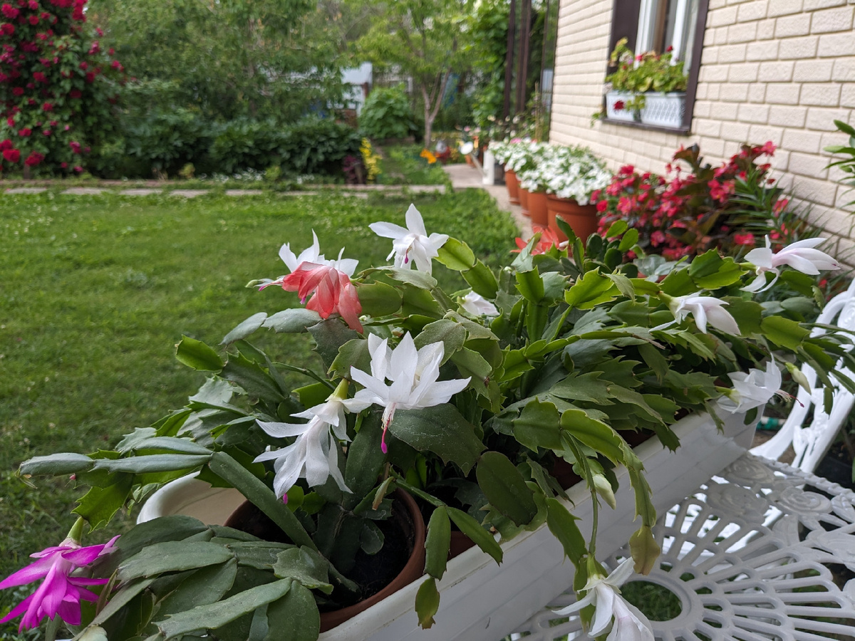 Декабристы, известные своей капризной природой, в этом году проявили особую активность. Обычно эти растения нуждаются в холоде для закладки бутонов, поэтому их оставляют на веранде прям до ноября. Однако весна и лето 2026 года привнесли неожиданные перемены. После продолжительного пребывания в прохладе они нежданно начали цвести ещё в мае, в компании с петуниями, что сделало их винтажными ненадолго, в то время как идеальное время для их цветения должно было наступить позже, в декабре.