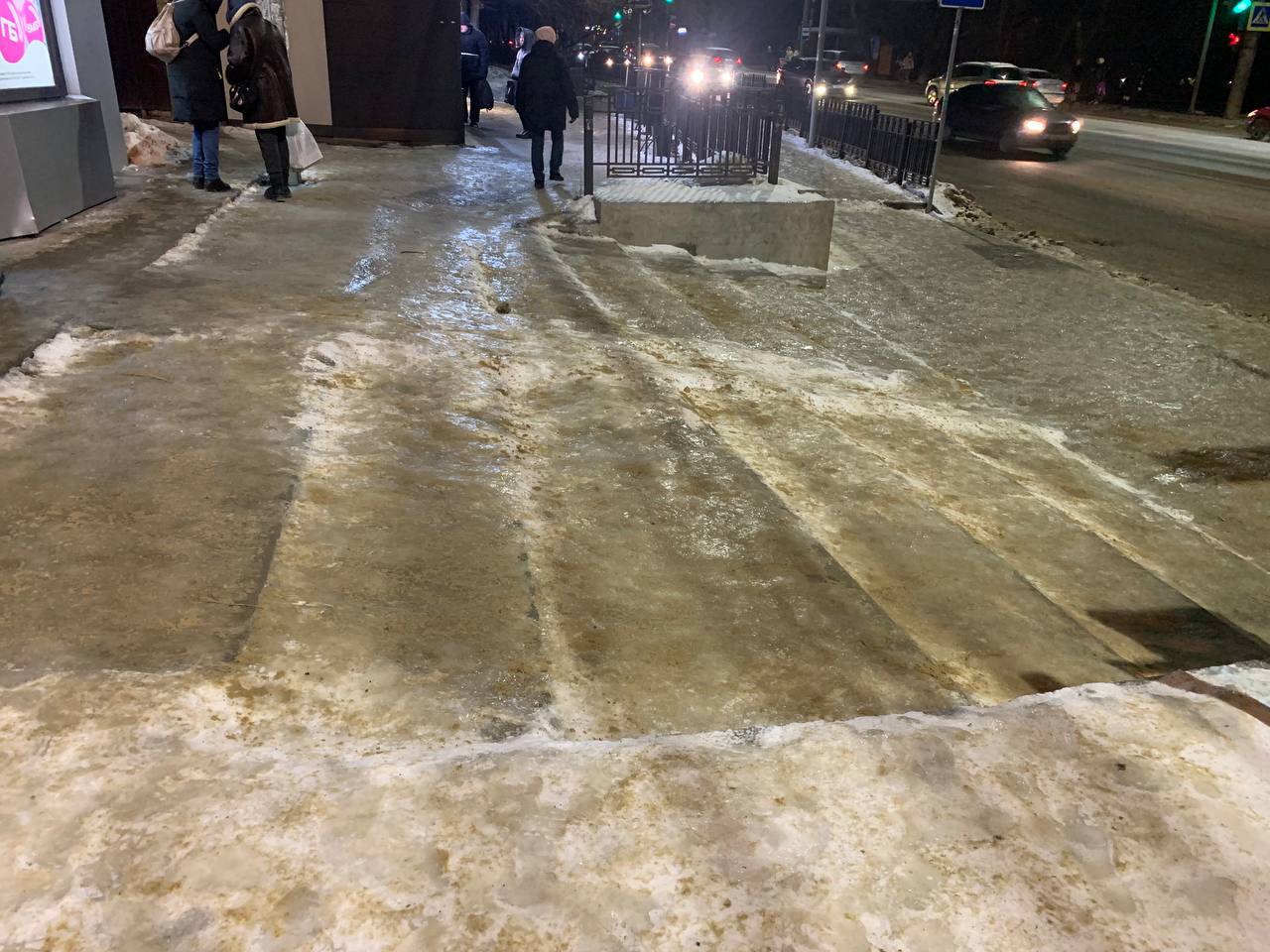 Лестница от храма к остановке «Березовая роща». Ступени слились воедино. Это откровенное глумление над людьми! Где соответствующие службы? Почему никто ничего не делает?