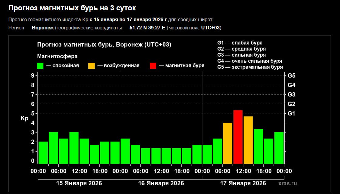 Воронежцы могут столкнуться с магнитной бурей уже в ближайшую субботу, 17 января.