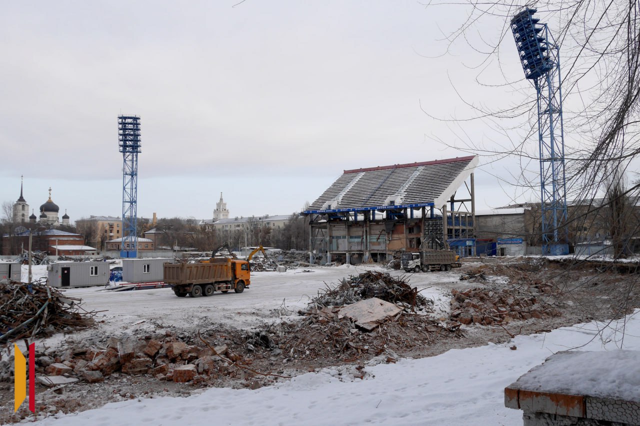 На месте побывал корреспондент РИА «Воронеж». Специалисты уже полностью разобрали Северную и Южную трибуны. Остаются только части Восточной и Центральной трибун, включая верхние ярусы, мачты и строительный мусор.