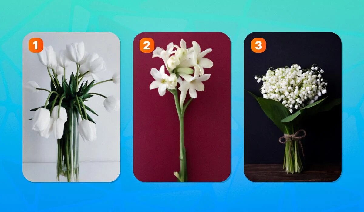 - Цветок № 1: Белый цветок символизирует тех, кто предпочитает спокойствие и стабильность. Эти люди консервативны, уважают традиции и надежны в своих поступках. Им важно иметь предсказуемую жизнь, и они часто служат опорой для окружающих. Любые неожиданности могут вызывать у них тревогу, и они находят утешение в привычных вещах.