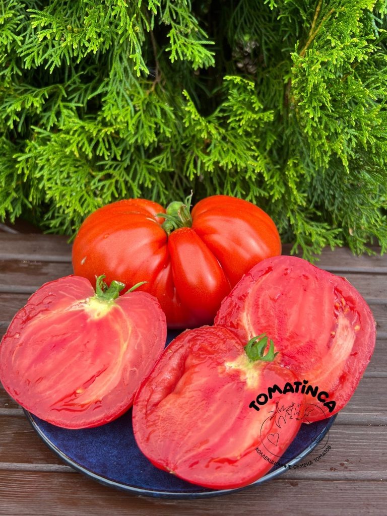 - Огромный размер: Томаты массой до 800 граммов прекрасно подходят для салатов и соков.