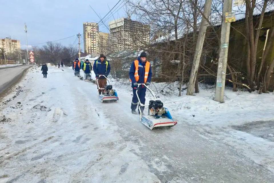 Ручная и механизированная уборка снега и наледи проводились на Ленинском и Дачном проспектах, улицах Богдана Хмельницкого, Серафимовича, Землячки, Витрука, 25 Января и по маршруту следования автобуса №90. С этих территорий вывезено 440 кубометров снега.