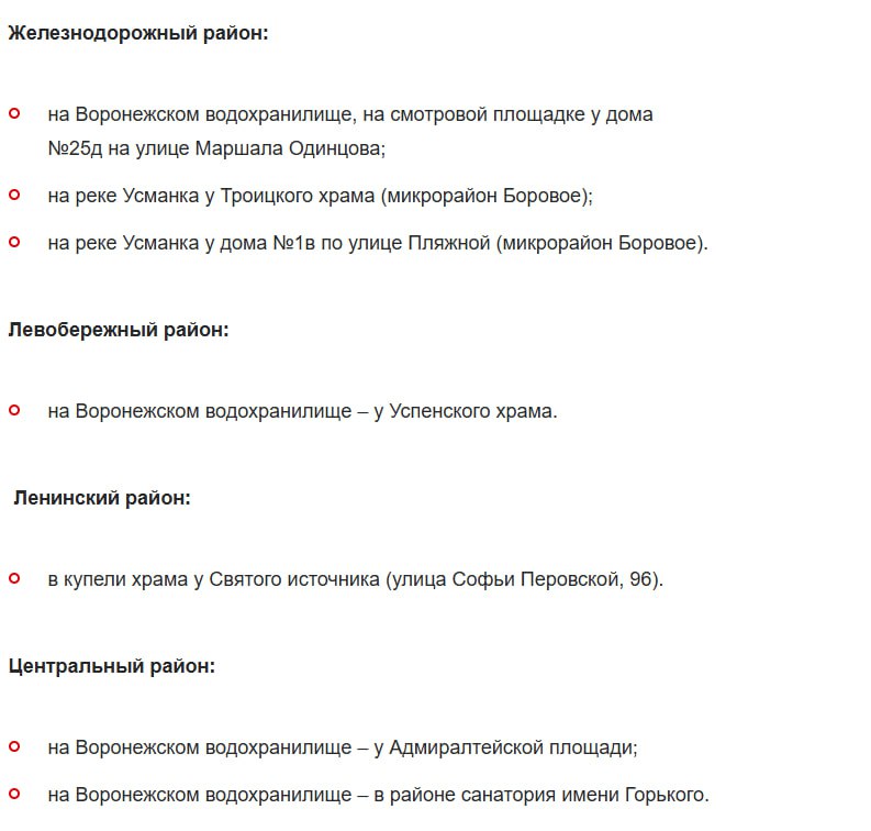 Окунуться в прорубь воронежцы смогут по следующим адресам: