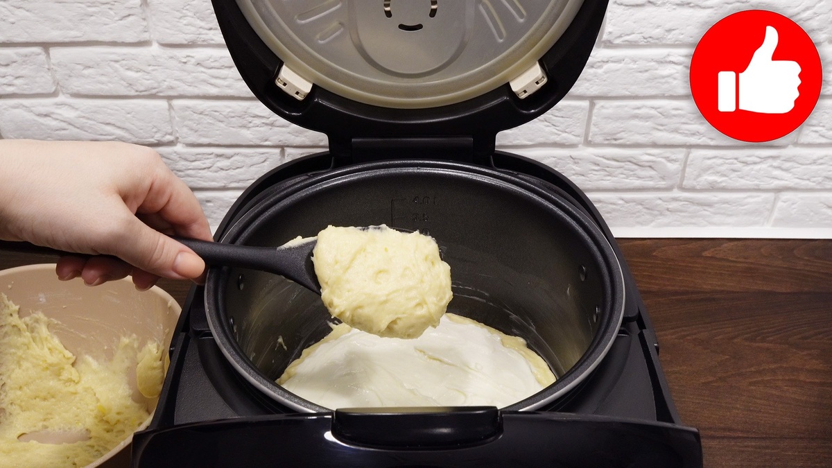 Затем, смазав чашу мультиварки маслом, вылейте 2/3 теста на дно. На приготовленное тесто щедро выложите творожную начинку и закройте оставшимся тестом. Установите режим «Выпечка» на 130°C и готовьте в течение 60 минут. Учтите, что в некоторых моделях мультиварок время может варьироваться, и вам может понадобиться уменьшить его до 45 минут.