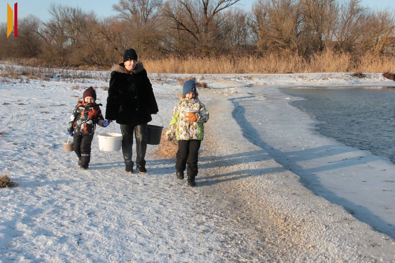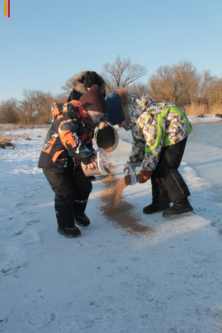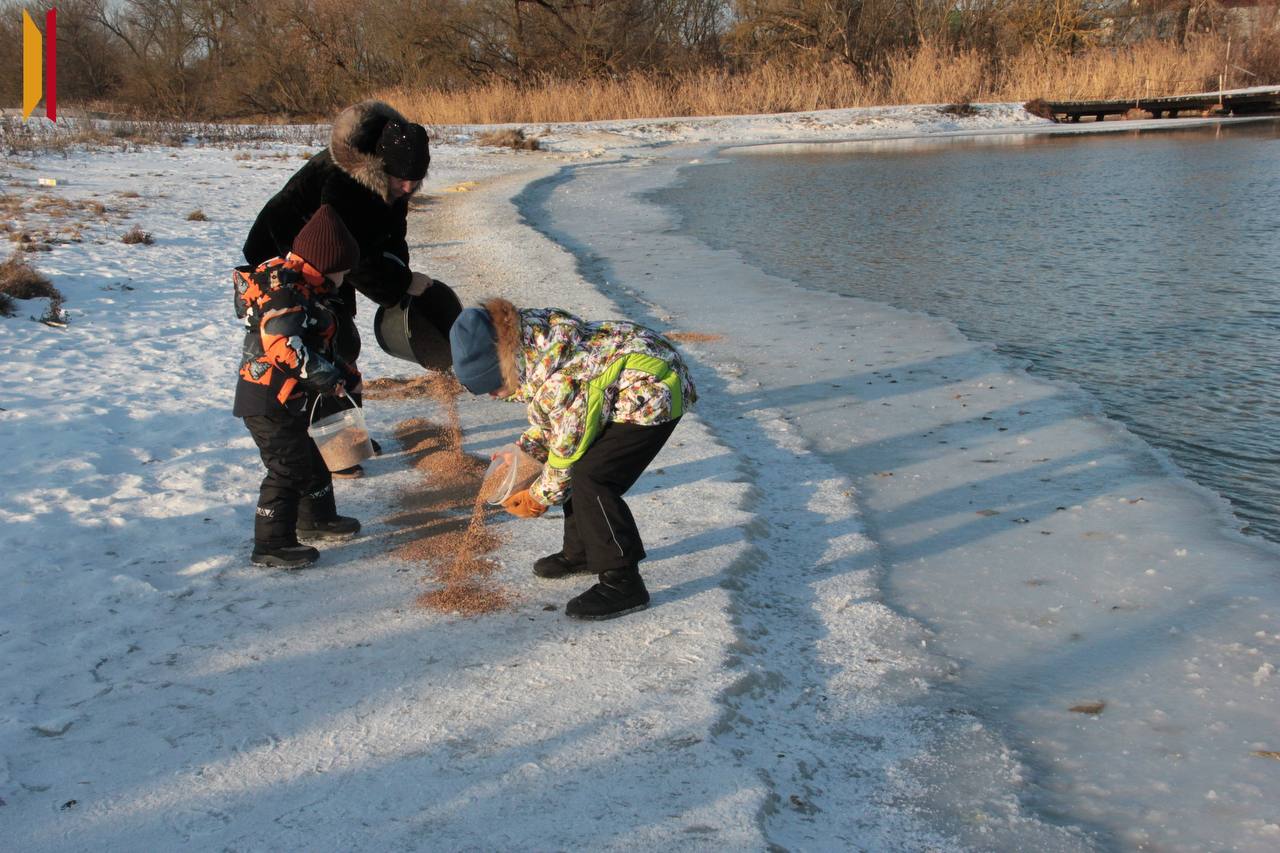 В морозные дни, когда река Толучеевка частично скована льдом, петропавловцы не забывают о пернатых обитателях водоёма. Особенно нуждаются в поддержке утки и селезни, оставшиеся на зимовку: естественный корм скрыт подо льдом, а сил на обогрев требуется всё больше. Многодетная мама Ольга Мирошникова вместе с сыновьями Егором и Мишей привезла пшеницу, чтобы подкормить птиц.