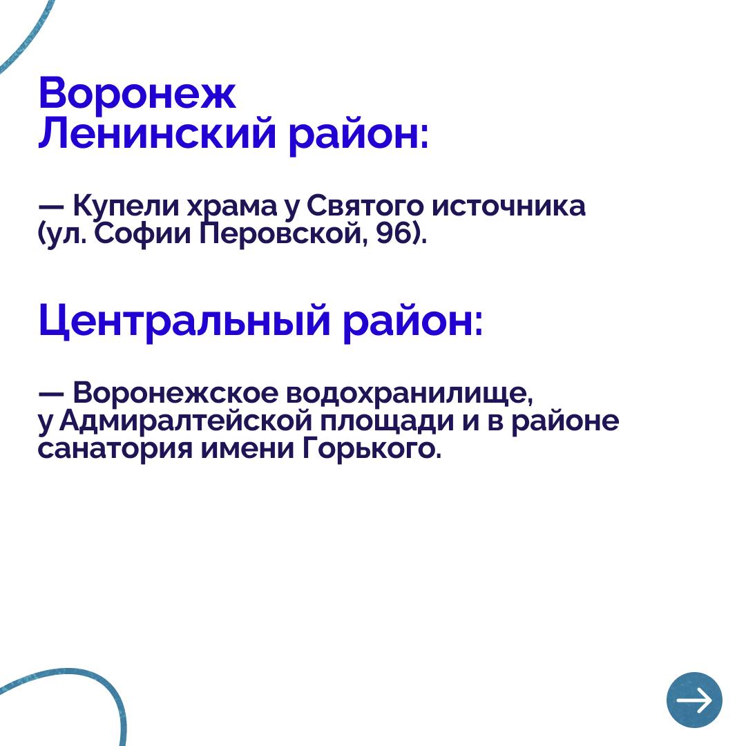 Приближается большой православный праздник — Крещение Господне. Каждый год он сопровождается традиционными купаниями в купелях. Чтобы омовение прошло безопасно, окунаться следует только в оборудованных местах. Собрали для вас список купелей в Воронеже и прилегающих районах.