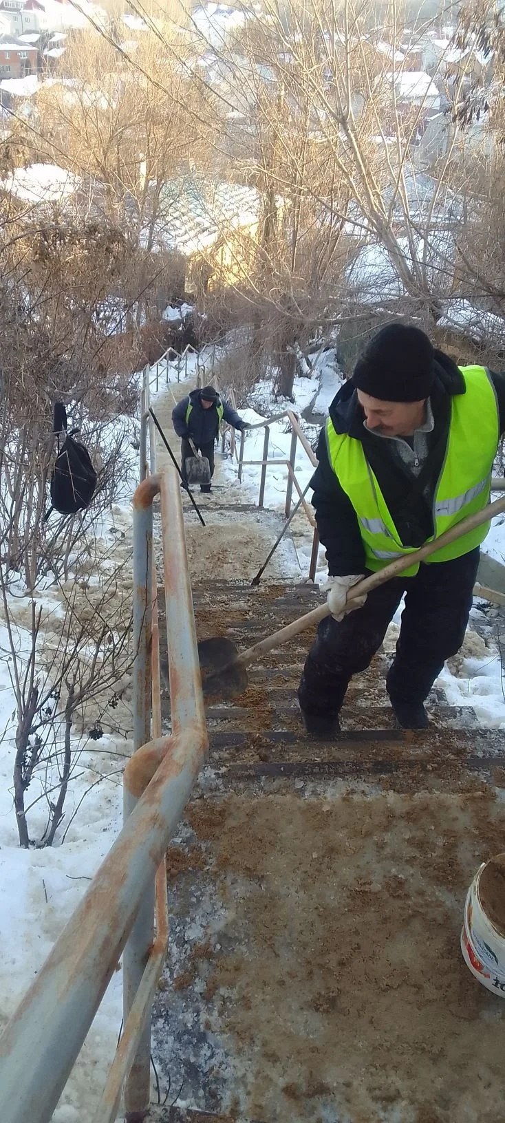Специалисты районного комбината благоустройства выполняют обработку противогололедными материалами дорог в частном секторе, тротуаров, очистку нагорных лестниц. Такие работы проводились на улицах Революции 1905 года, Платонова, 20-летия Октября, пер. Жасминный, Коперника, Севастьяновский съезд, Б. Стрелецкая, Фрунзе и других.