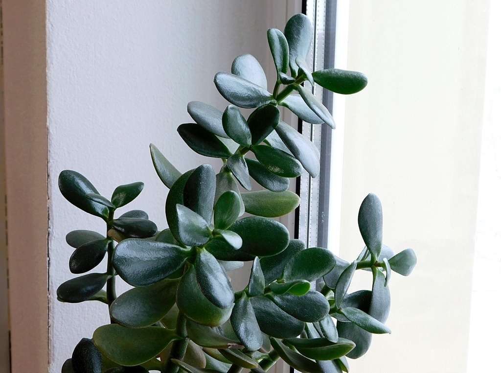 - Толстянка яйцевидная (Crassula ovata): Это раскидистое деревце с гладкими, мясистыми листьями, достигающими до 1,5 метров в высоту. В стрессе листья могут меняться в цвете, а распускающиеся звезды кремового или розового оттенка радуют глаз весной.