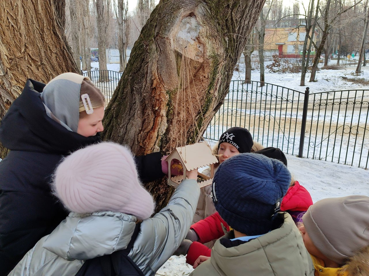 На познавательном занятие дети узнали, какие виды птиц остаются в городе в холодное время года, чем их можно безопасно подкармливать и как изготовить простую, но полезную кормушку.