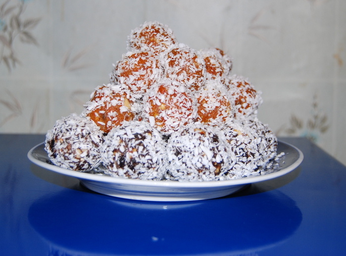 Основными ингредиентами являются курага и чернослив. Эти сухофрукты насыщены полезными веществами и никак не уступают сладостям на основе сахара. Идеально подходит для тех, кто следит за здоровьем.