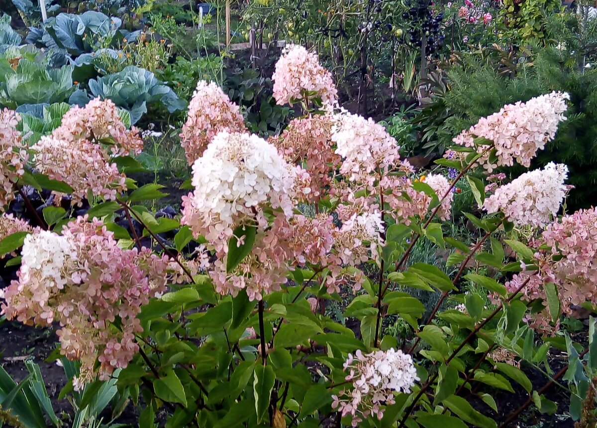 - Метельчатая гортензия: Это самый распространенный вид, который очаровывает роскошными крупными соцветиями. Высота кустов обычно колеблется от 1,5 до 2 м, в то время как некоторые сорта могут вырастать до 5 м. Цветет с середины лета до глубокой осени.