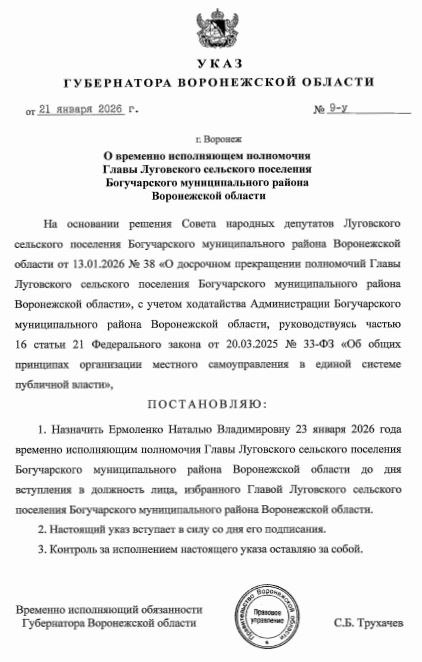 Официальный документ подписал врио губернатора Воронежской области Сергей Трухачёв.