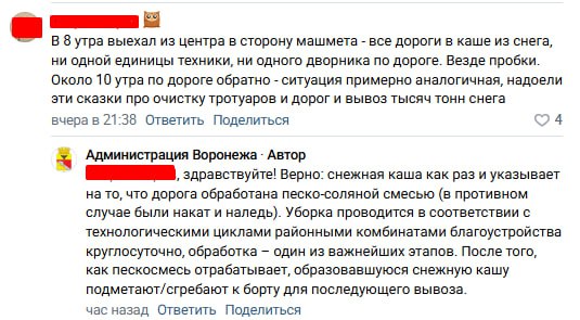 Сегодня днем на улицах города работали 215 единиц техники и 296 специалистов ручного труда. Для обработки тротуаров и дорог было использовано около 1,2 тысяч пескосмеси, вывезено более 1,1 тысяч кубометров снега.Администрация Воронежа | Подписаться...