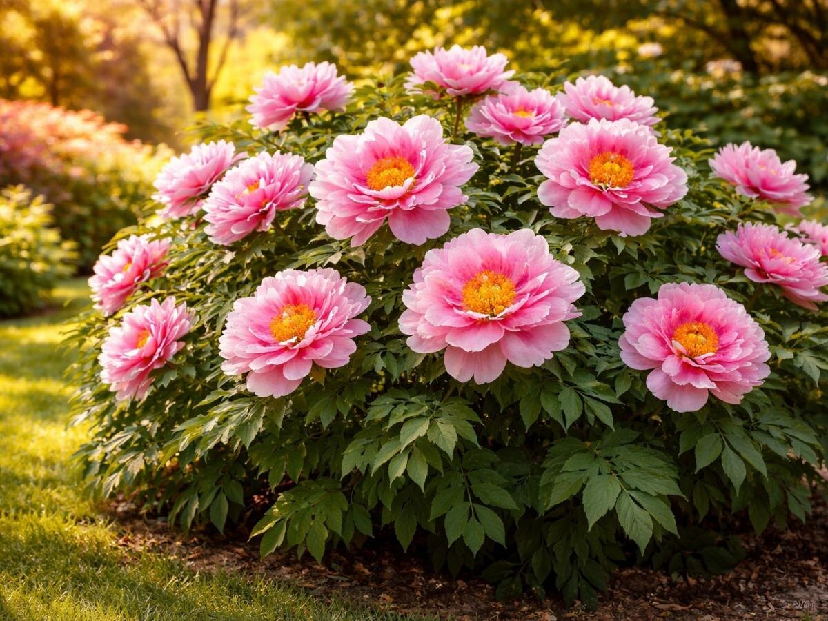 В весенний период, обычно в мае-июне, древовидный пион превращается в настоящий акцент вашего сада. Его цветы впечатляют размером — до 25 см в диаметре, и разнообразием оттенков: белых, кремовых, розовых, малиновых и ярко-фиолетовых, часто с контрастной золотистой серединкой. Хотя его цветение длится недолго, эффект от него остается надолго, даже когда цветы опадают, куст продолжает радовать глаз своей утонченной листвой и аккуратной формой.