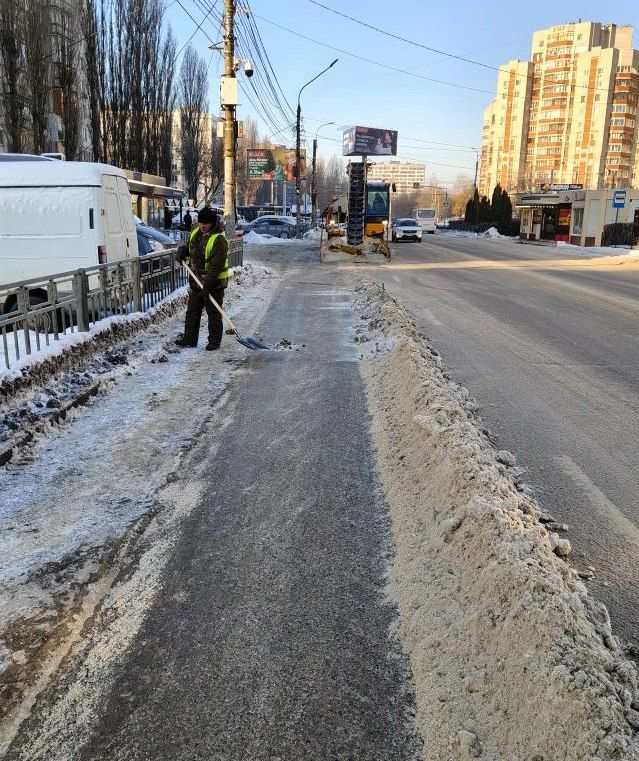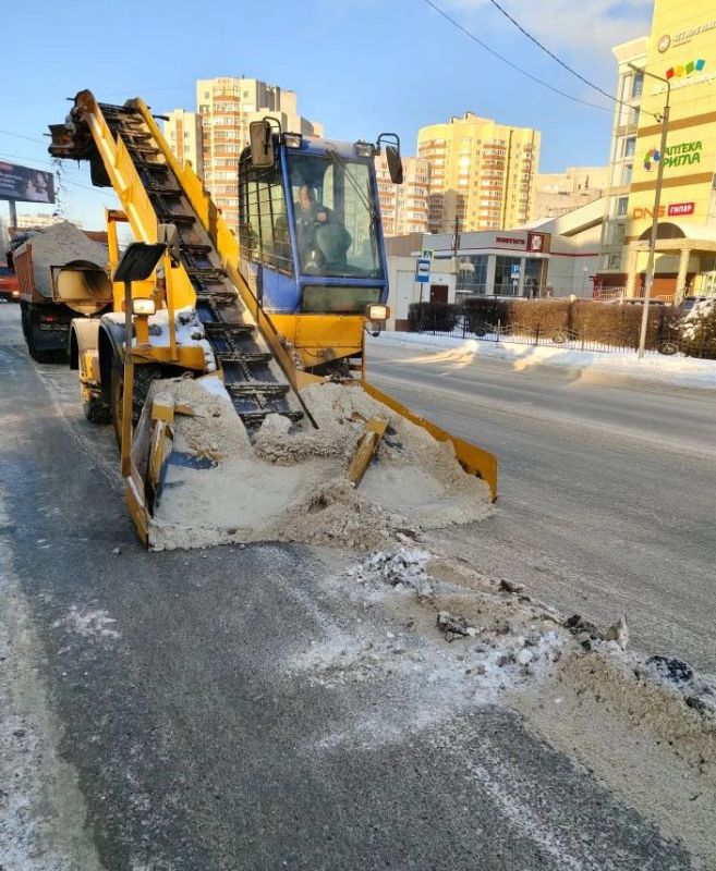 Днем районные комбинаты благоустройства традиционно уделяли внимание уборке пешеходных зон, спусков и подъемов, остановочных площадок, подходов к пешеходным переходам, а также расчистке правых частей дорог. Работали 169 единиц техники и 241 специалист ручного труда. Было использовано около 700 тонн пескосмеси, вывезено еще более тысячи кубометров снега.
