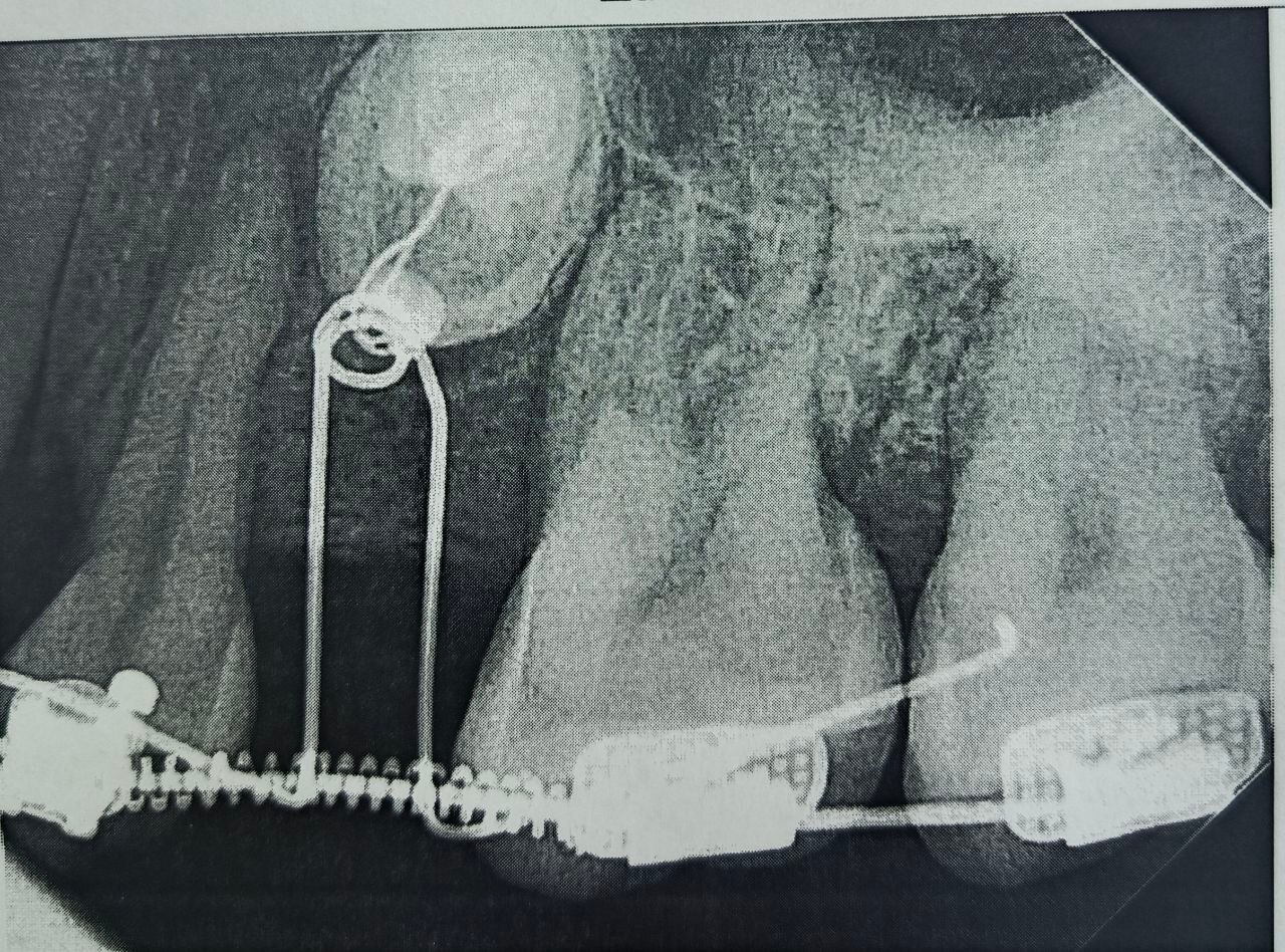 Сначала пациентке установили брекет-систему, полтора года с ее помощью в зубном ряду создавалось место. Когда пространство было подготовлено, хирурги провели операцию: раскрыли десну, чтобы обнажить коронки непрорезавшихся зубов, и зафиксировали на них специальные ортодонтические кнопки.