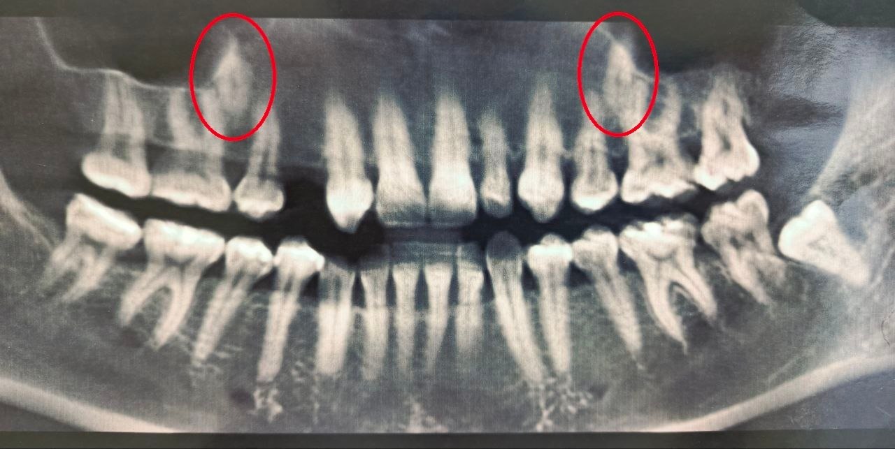 Необычный случай начался в 2023 году, когда пациентка обратилась к специалистам. В челюсти находились два непрорезавшихся зуба.