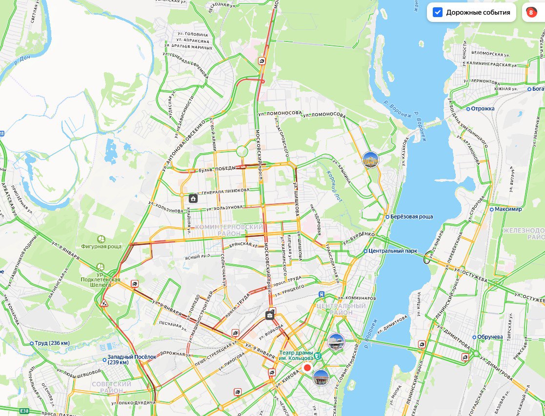 Из-за снегопада пробки в Воронеже уже 8 баллов