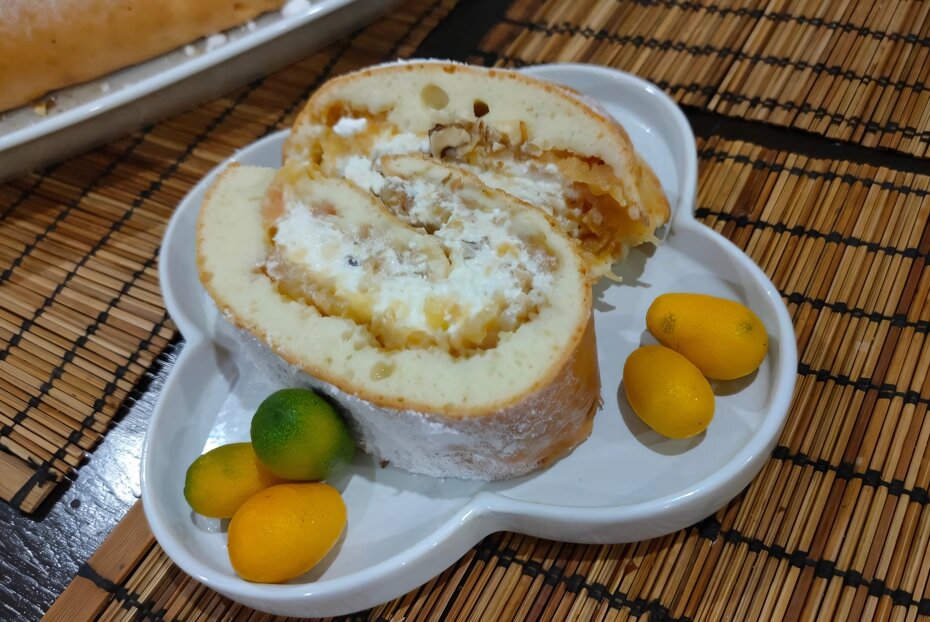 Рулет с творожно-яблочной начинкой