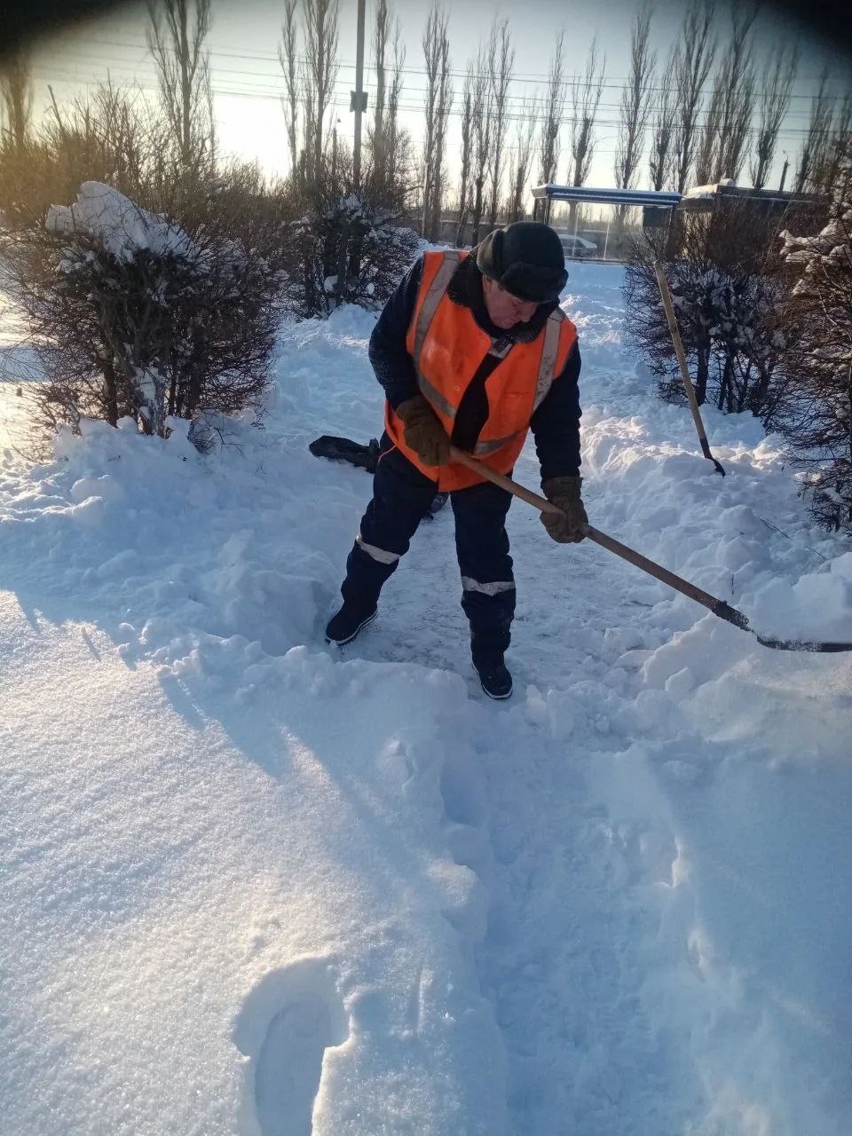 Пока техника очищает магистрали, наши герои с лопатами наводят порядок на остановках, тротуарах и дорожках.