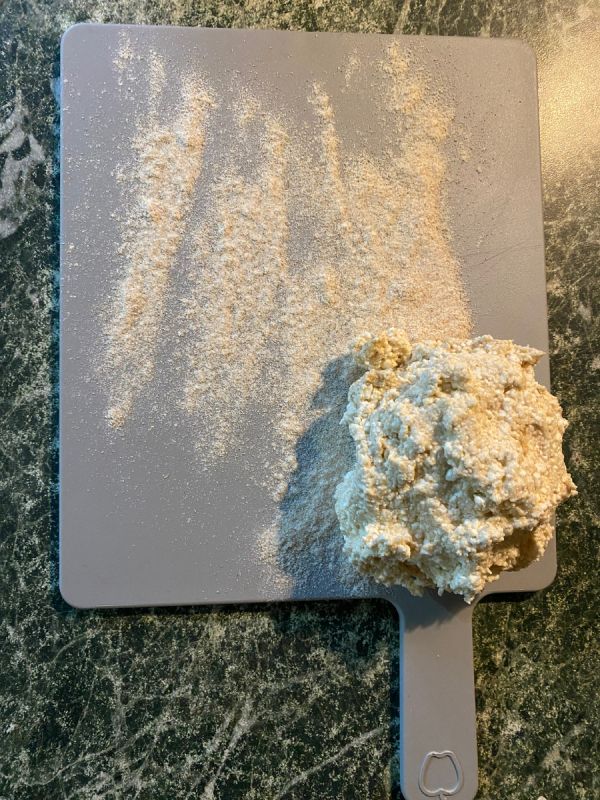 Для начала все ингредиенты следует объединить в большой миске и тщательно вымесить тесто. Затем на посыпанной мукой поверхности стоит раскатать тесто в форме колбаски.