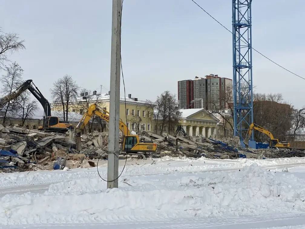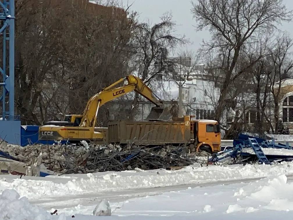 К концу месяца должны быть демонтированы все мачты освещения, сейчас работы ведутся на первых двух. В целом с площадки уже вывезли около 100 тонн металла, более 37 тысяч тонн кирпичного и железобетонного боя и свыше 2 тысяч тонн мусора.