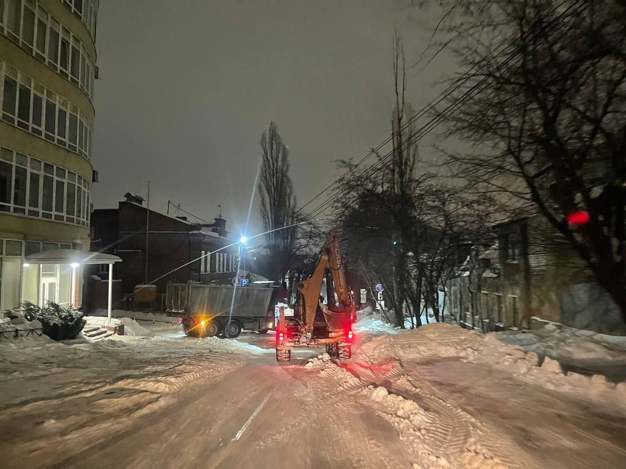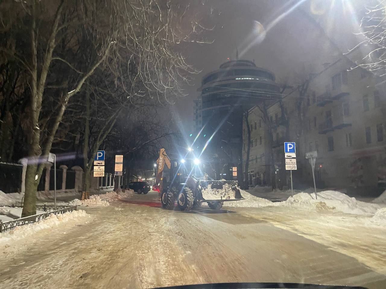 Прошедшей ночью работало почти 30 единиц техники комбината благоустройства, которые были задействованы как в процессе уборки и вывоза снега с улицы Остужева и остановок общественного транспорта на улицах Фёдора Тютчева, Минской, Электровозной...