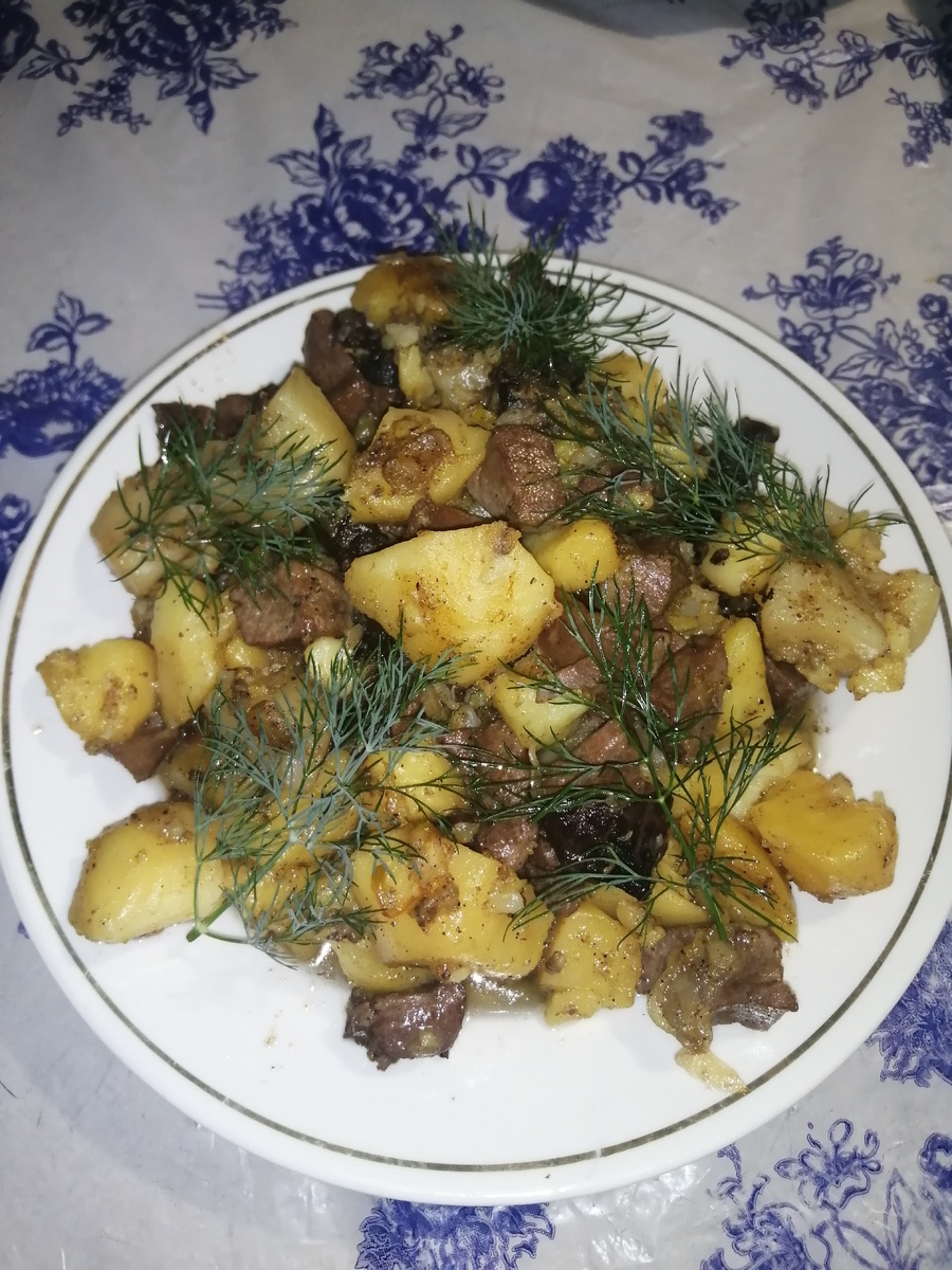 Перед началом готовки стоит подготовить все ингредиенты. Это очень важно, так как процесс проходит достаточно быстро и требует внимания к казану, чтобы не пригорело. Печень, лёгкое и сердце нарезать небольшими кусочками. Клубни картофеля очистить и нарезать так, чтобы они были одинакового размера — это упростит процесс готовки. Лук также нарезаем, как нравится (Полукольца — отличный вариант).