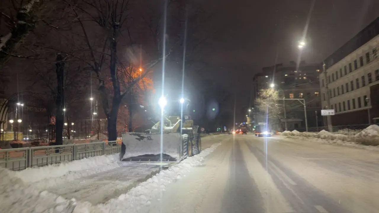За ночь с городских парковок вывезли около 1,6 тысяч кубометров снега