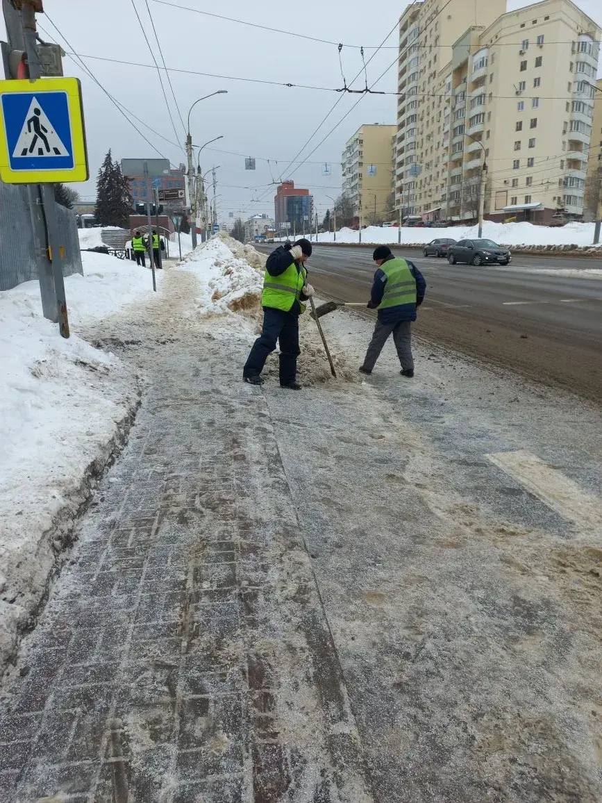 В дневную смену в городе работали 159 единиц техники и 246 специалистов ручного труда. Выполнялось расширение проезжей части, расчистка пешеходных зон и остановочных площадок. Было вывезено около 1,5 тысяч кубометров снега.