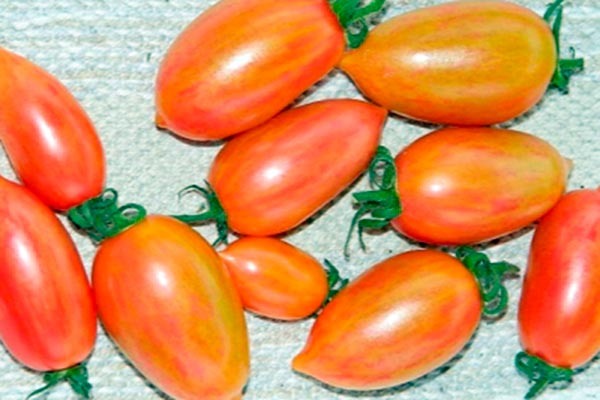 Растения данного сорта имеют невысокие, но крепкие кусты, высотой от 0,5 до 1,2 метра, в зависимости от условий роста. Плоды имеют коктейльный размер, весом от 20 до 50 граммов, отличаются интригующей мраморной окраской и сладким вкусом, напоминающим мармелад. Вот что они предлагают:
