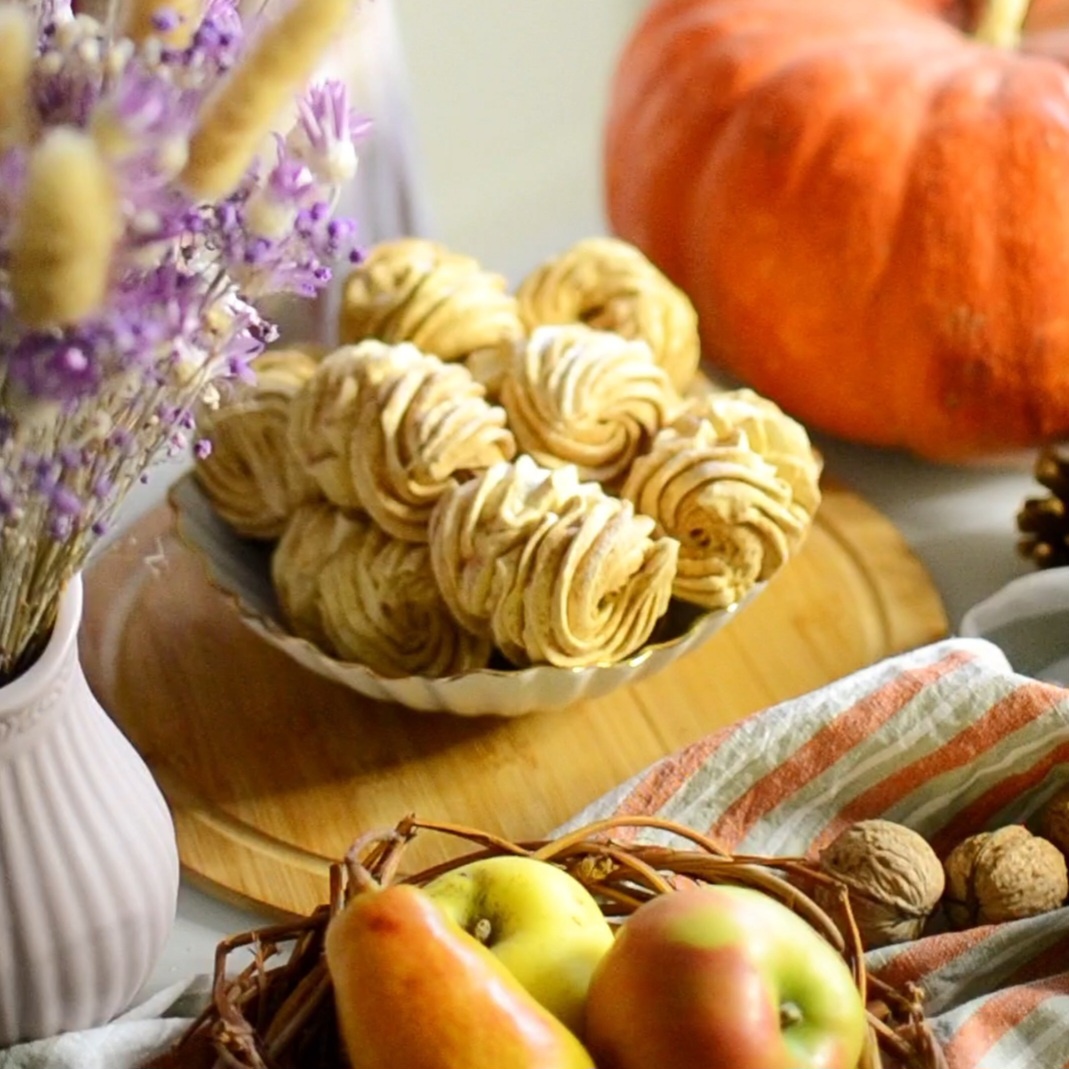 Когда зефир будет готов, его можно аккуратно склеить попарно и обвалять в смеси кукурузного крахмала и сахарной пудры — для создания красивой текстуры. Этот необычный зефир из тыквы и кофе станет идеальным угощением для осеннего чаепития с друзьями!