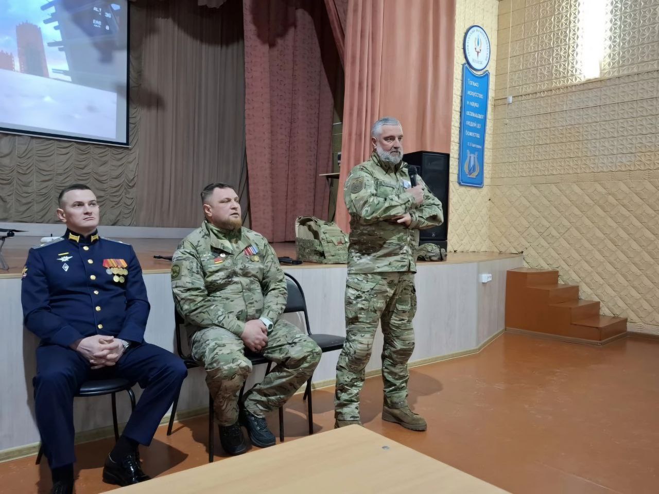 Михаил Гамбург сразу обозначил, что это будет честный разговор без формальностей. Основываясь на личном опыте, он говорил с молодёжью о главном — о личном выборе, долге и о том, что на практике значит защищать Родину в современном мире.