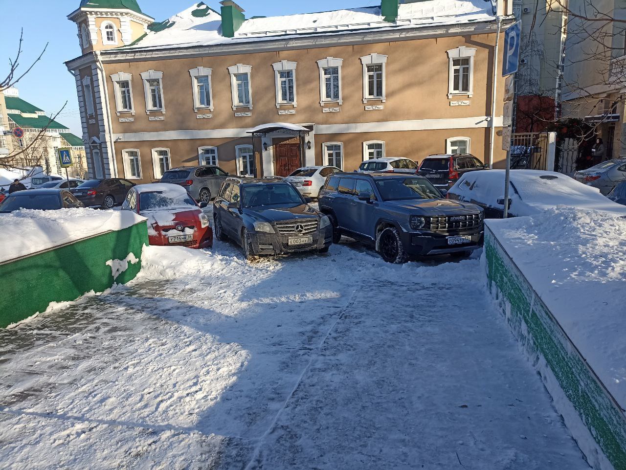 Каждый раз, проходя через Петровский сквер, наблюдаю такую картину. Садовые дорожки, как в стену, упираются в плотно стоящие автомобили.