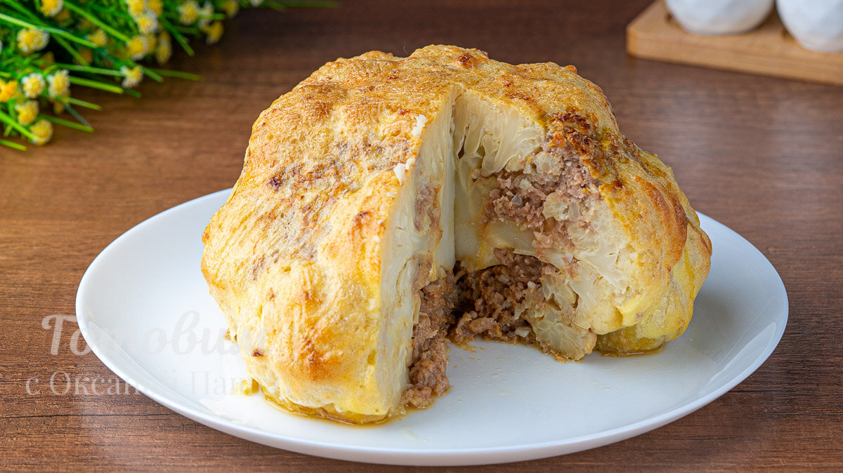 Сам процесс приготовления довольно прост и не потребует много времени. Для этого рецепта берётся целый кочан цветной капусты, который фаршируется мясом и затем запекается. Фарш можно использовать любой: говяжий, свиной или куриный — выбирайте на свой вкус.