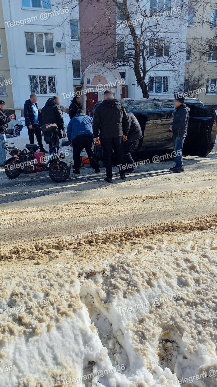 В Воронеже курьер на электроскутере вылетел под колеса машины: автомобиль перевернулся