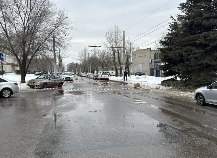Вчера здесь произошло повреждение, грунт продолжает проседать. В 50 метрах от большой старой ямы образовался новый провал. Причина обрушения грунта — переполнение коллектора из-за активного таяния снега. Движение на участке улицы временно ограничили.