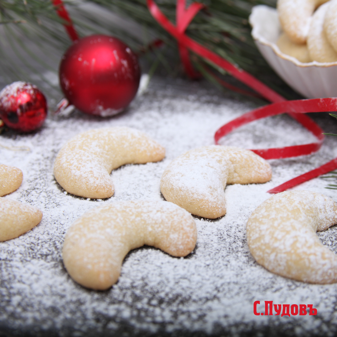 Ванильно-миндальные рогалики, посыпанные сахарной пудрой, напоминают зимний снежок, и выглядят по-настоящему эффектно и аппетитно. Это идеальное лакомство как для душевного вечернего чаепития в кругу семьи, так и для угощения дорогих гостей на празднике, пишет С.Пудовъ. С любовью к жизни!.