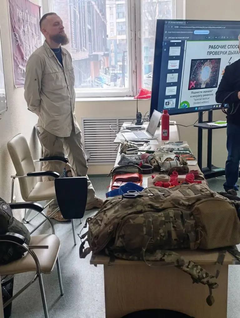 Для слушателей здесь организовано изучение стрелкового оружия, средств индивидуальной защиты (каски/бронежилеты), тактической медицины (оказание первой помощи при ранении), а также техники управления БПЛА. Знания полезные не только в боевых условиях, но и в гражданской жизни. Теорию все желающие затем отрабатывают на практике на загородном полигоне (стрельба и управление БПЛА).