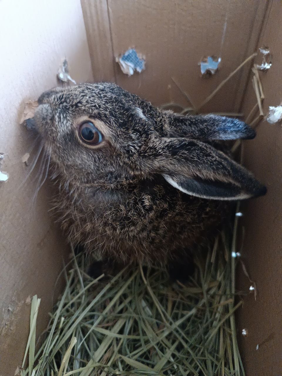 Зверька нашли на огороженном участке. После того, как малыш немного подрос, его отправили в центр помощи зайцам. Сейчас с зайчонком все хорошо. По отзывам волонтеров, он обладает очень активным и буйным характером.