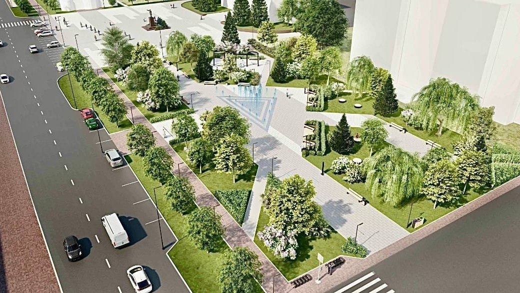 Работы будут проводиться в три этапа. Специалисты подготовят территорию для благоустройства. Подрядчик также смонтирует автоматическую систему полива, уложит плитку, а также установит камеры наблюдения и звуковое оборудование. В сквере появятся уютные зоны отдыха с новыми деревьями, кустарниками и малыми архитектурными формами. Центральным элементом зеленой зоны станет сухой фонтан. Планируется обновить и памятник Ленину, облицевать его основание гранитом, высадить вокруг зелень.