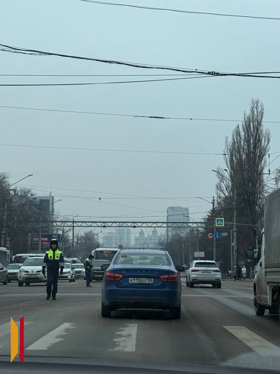 Из-за отключения затруднен проезд по Московсому проспекту. Также пробка наблюдается и на самом перекрестке. На месте работают регулировщики.
