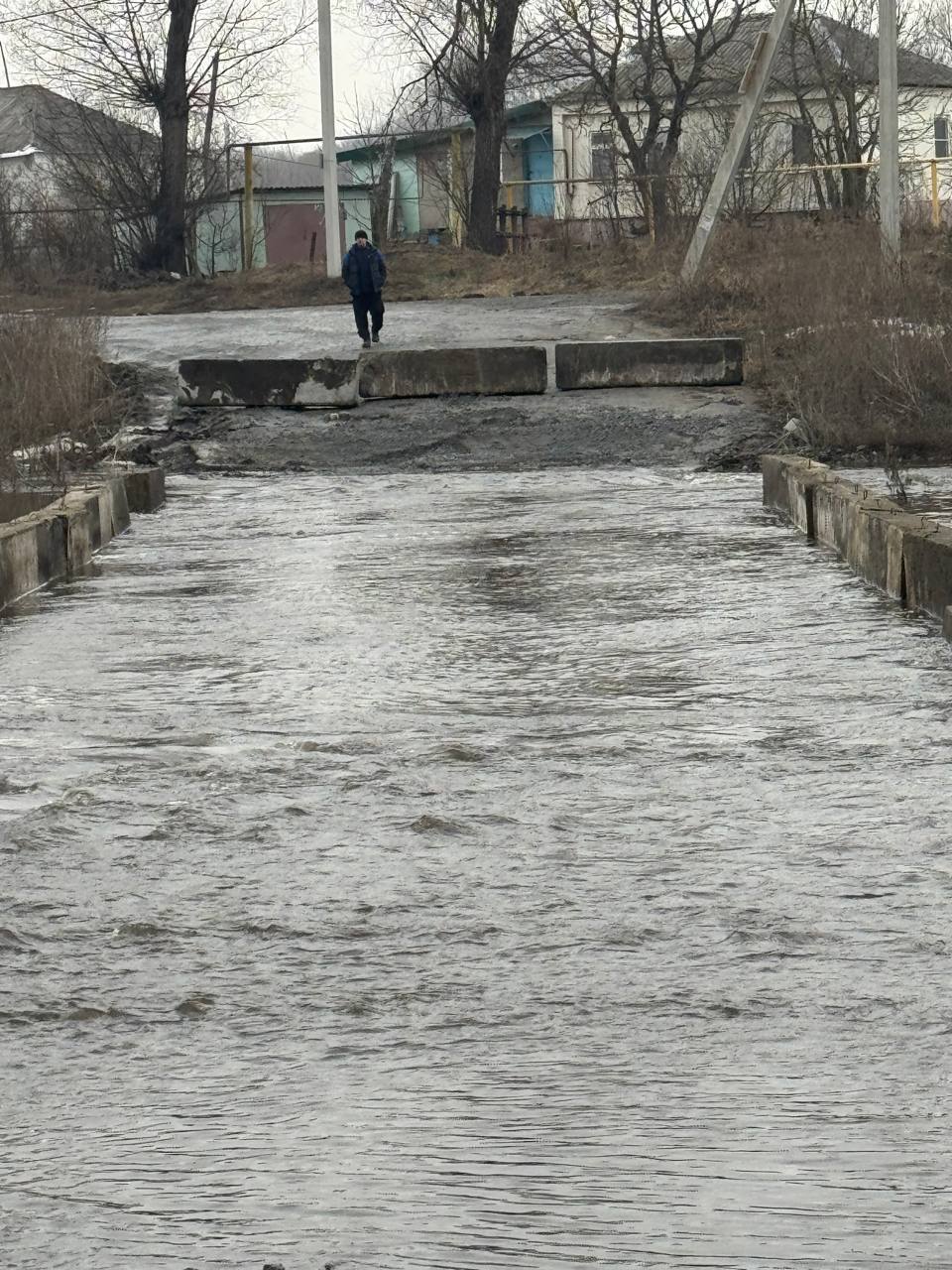Для обеспечения безопасности на подъезде к переправе установлены железобетонные блоки. В администрации района предлагаются два пути объезда: