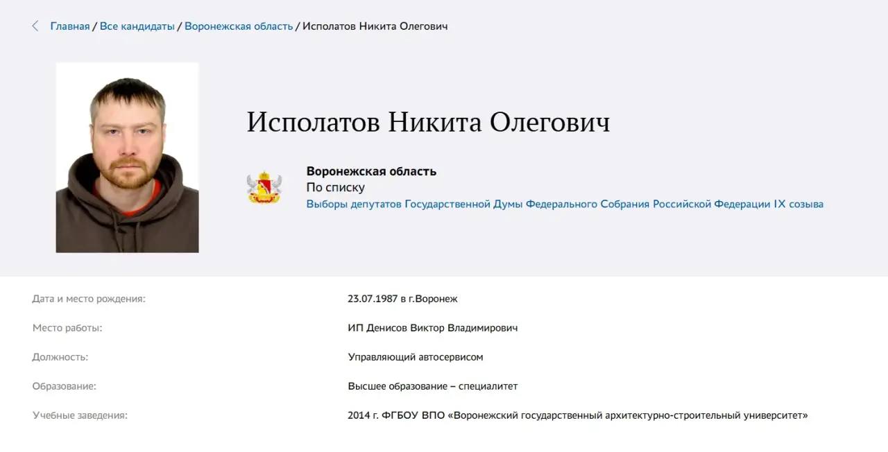 На праймериз «Единой России» заявилсяуправляющий автосервисом Никита Исполатов. Бизнесом занимается как индивидуальный предприниматель. Хочет пойти на выборы не по конкретному округу, а по спискам.